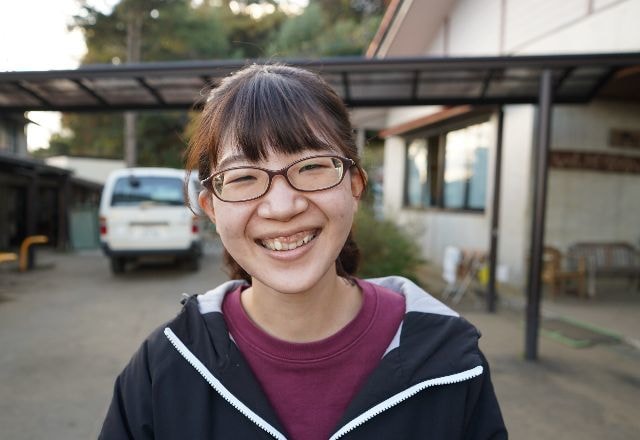 「共に」「障害を個性として」という方針が私の理想とピッタリでした。東京都でやっていた福祉施設のインターンに参加しこの業界に興味を持ち、「こういう施設で働きたい」と自分の中で理想を持つようになりました。その後、いくつか選考を受けた中で私の理想と施設の方針がピッタリだったのが印旛福祉会でした。障害を障害としてとらえずに「個性」としてとらえる考えに惹かれたのと、自然に囲まれてすごく良い雰囲気だったのが大きな理由になりました。実際に入社してからは農作業など普段できないことをたくさん経験しましたが、それよりもメンバーと過ごす時間がとても魅力的で、ここを選んでよかったなと思っています。